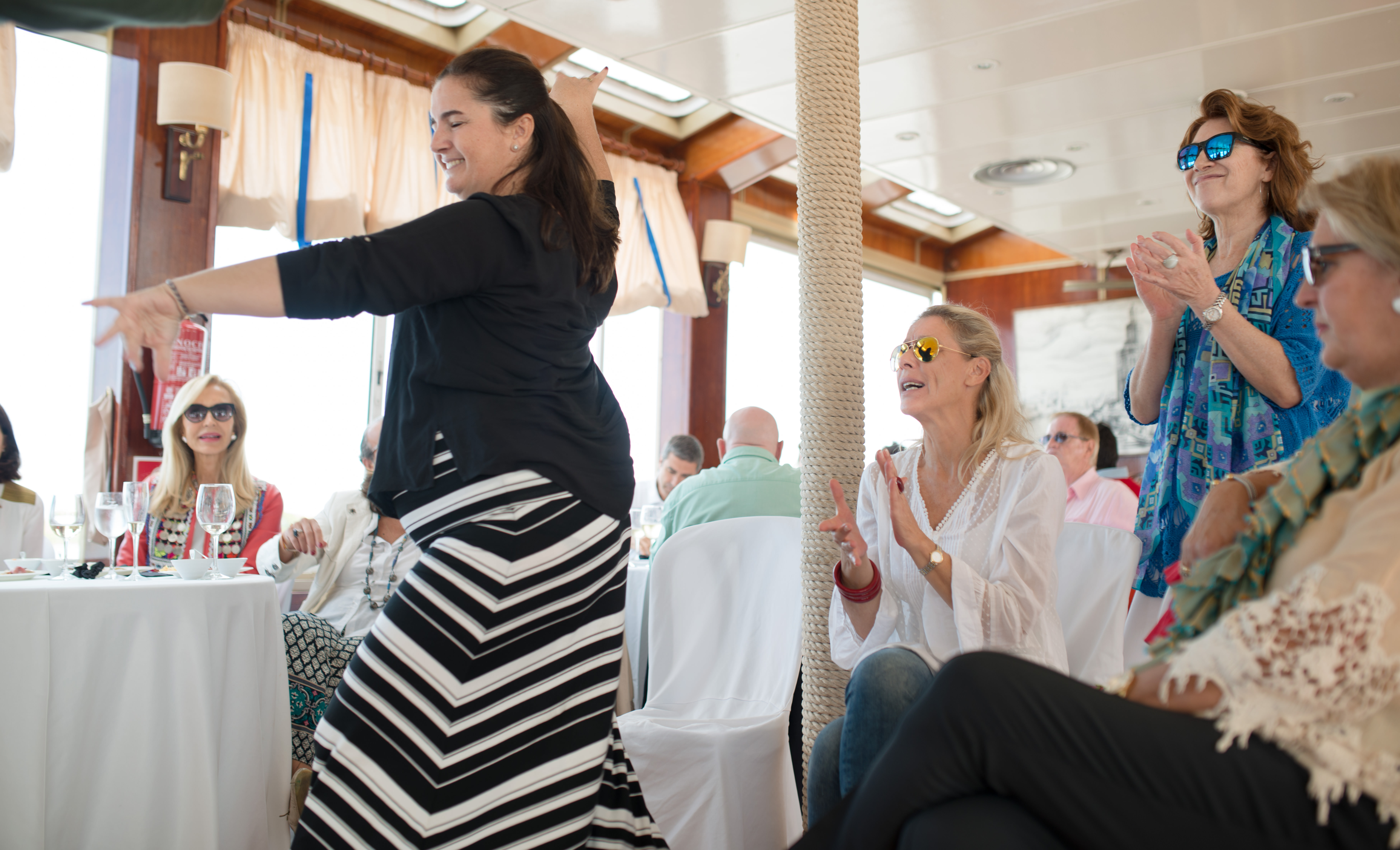 La velada no se alargó mucho porque al día siguiente estábamos citados muy pronto para embarcarnos en el crucero «Río Lírico». Desde el Puerto de las Indias en Sevilla frente a la Torre del Oro, ahí es nada, fuimos navegando por la ruta de los galeones hasta la desembocadura del Guadalquivir en Sanlúcar de Barrameda.